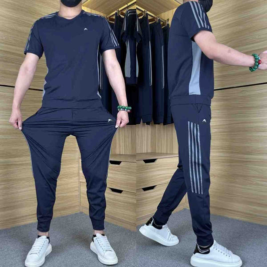 cm413-Men's trendy casual sports short-sleeved trousers suit