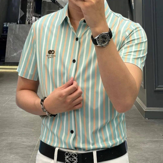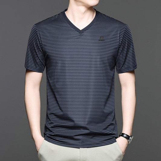 Ice Silk Men's Breathable Striped Short Sleeve T-Shirt(you388)