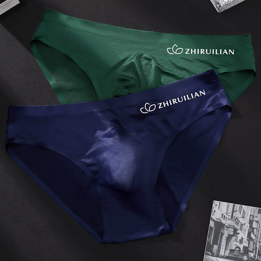 iq37-Men's Ice Silk Light Luxury Satin Boxer Briefs