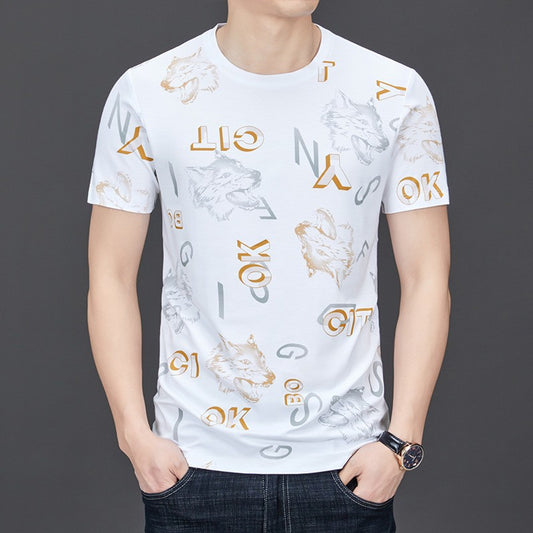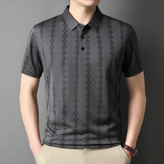 luu859- Men's Jacquard Embroidered Lapel Short Sleeve Polo Shirt