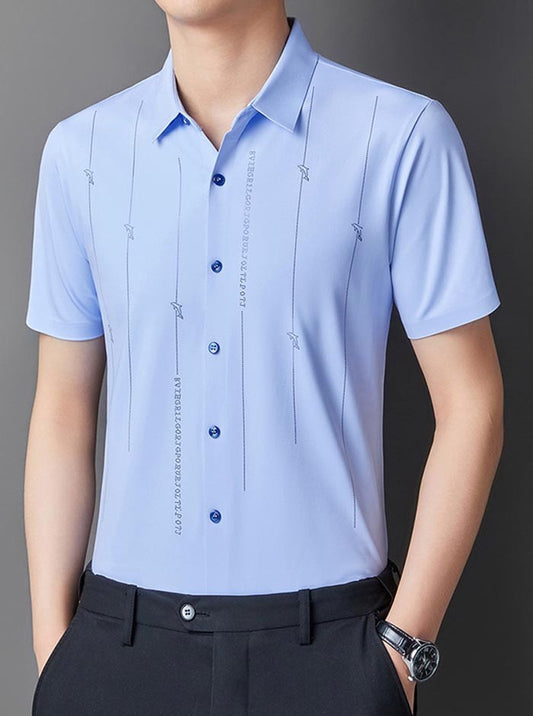2025 Men's stylish casual lapel striped short-sleeved shirt(cm339)