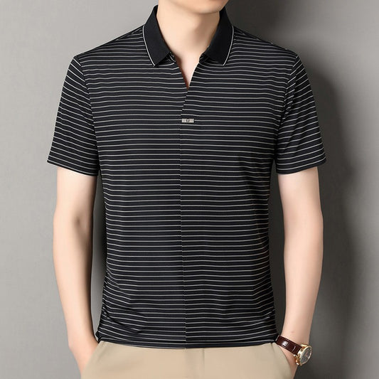 Men's Summer Striped Ice Silk Short Sleeve POLO Shirt(cm457)
