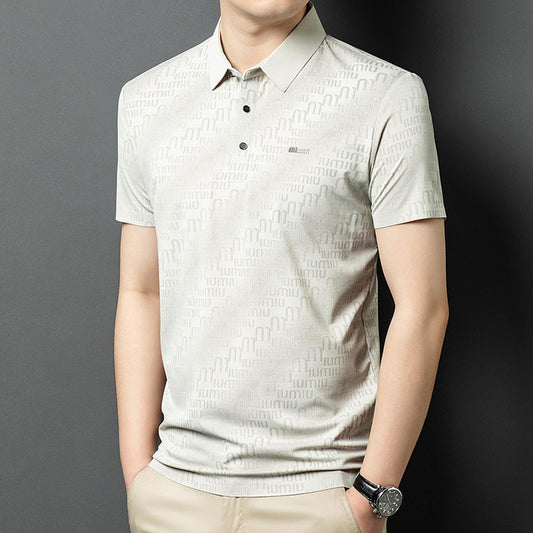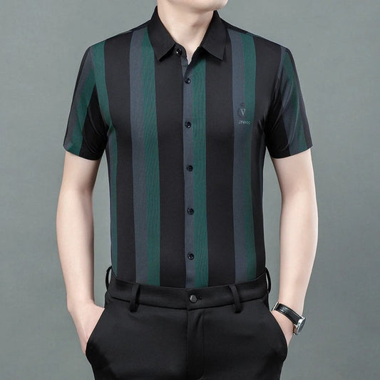 Summer Men's Striped Print Lapel Short Sleeve Polo Shirt