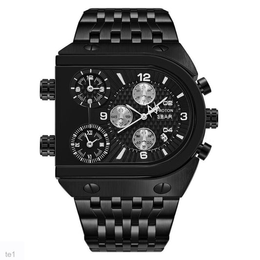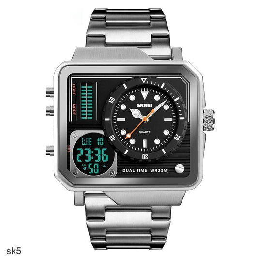 wh125-Men's Square Dual Display Waterproof Steel Band Digital Watch