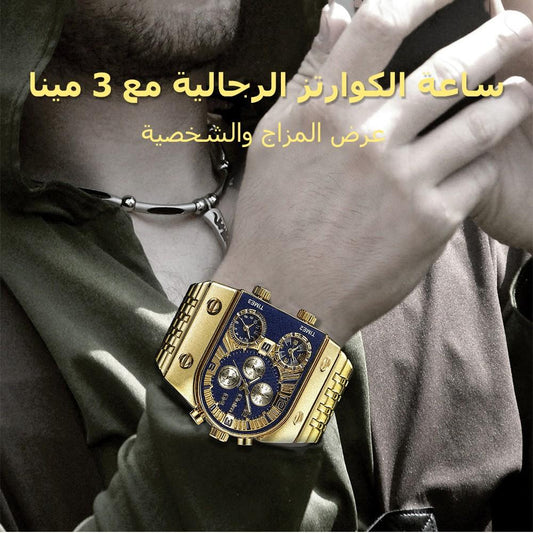 wh001-ساعات الكوارتز الذهبية للرجال المقاس الكبير واتش الفاخرة مع 3 المينا
