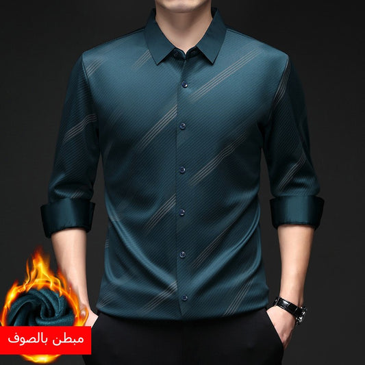 zd256-2024 Winter Men's Seamless Long Sleeve Plush Shirt