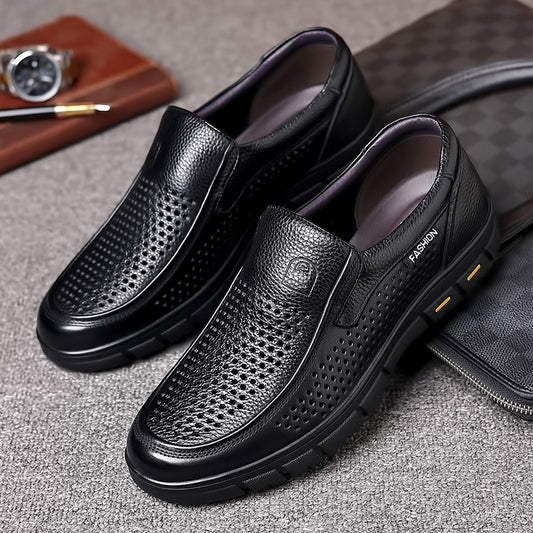 صنادل جلدية رجالية للأعمال الصيفية بتصميم مفرغ وعملي