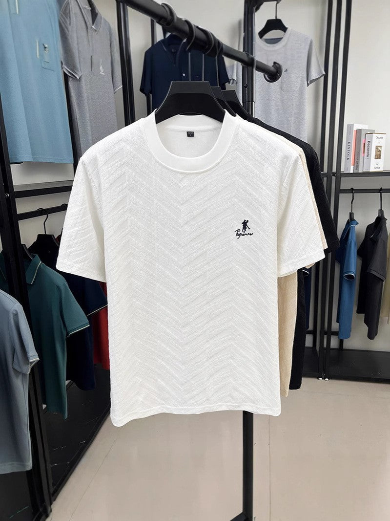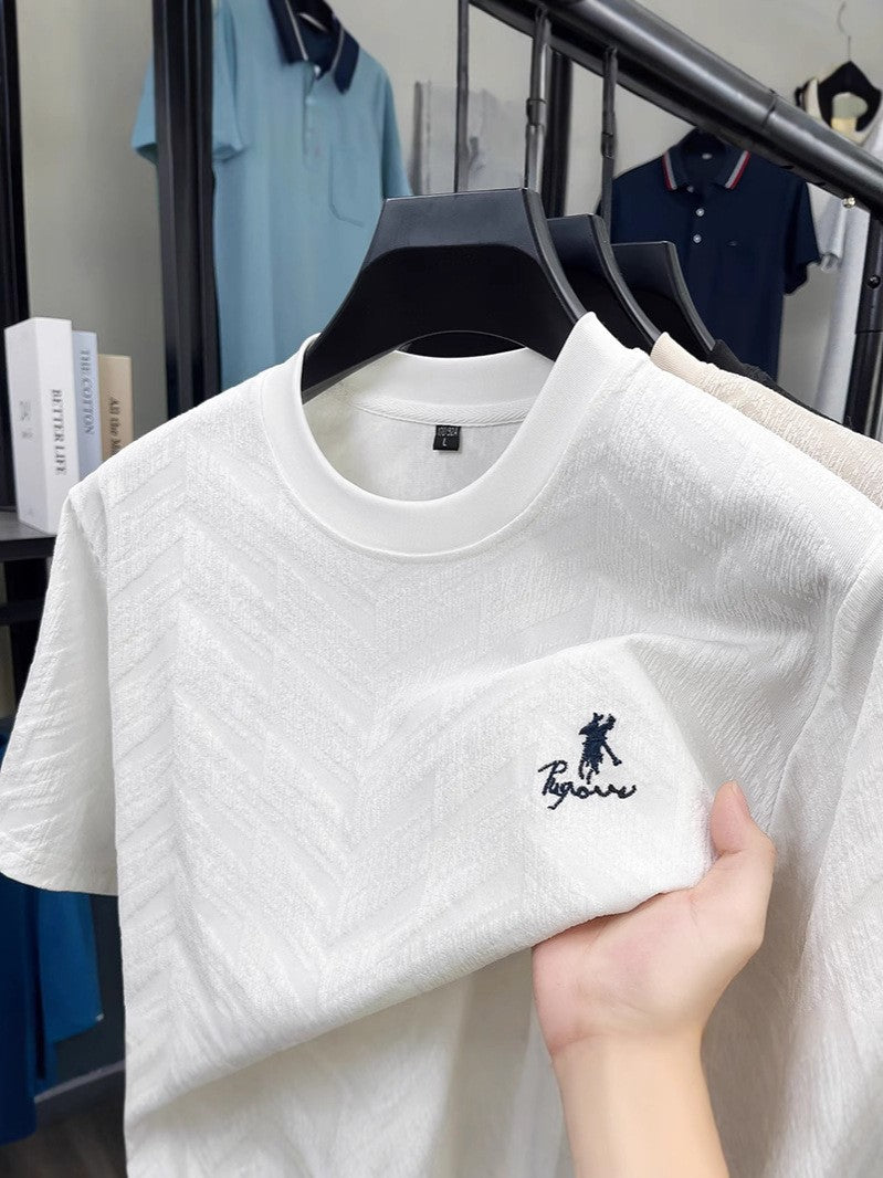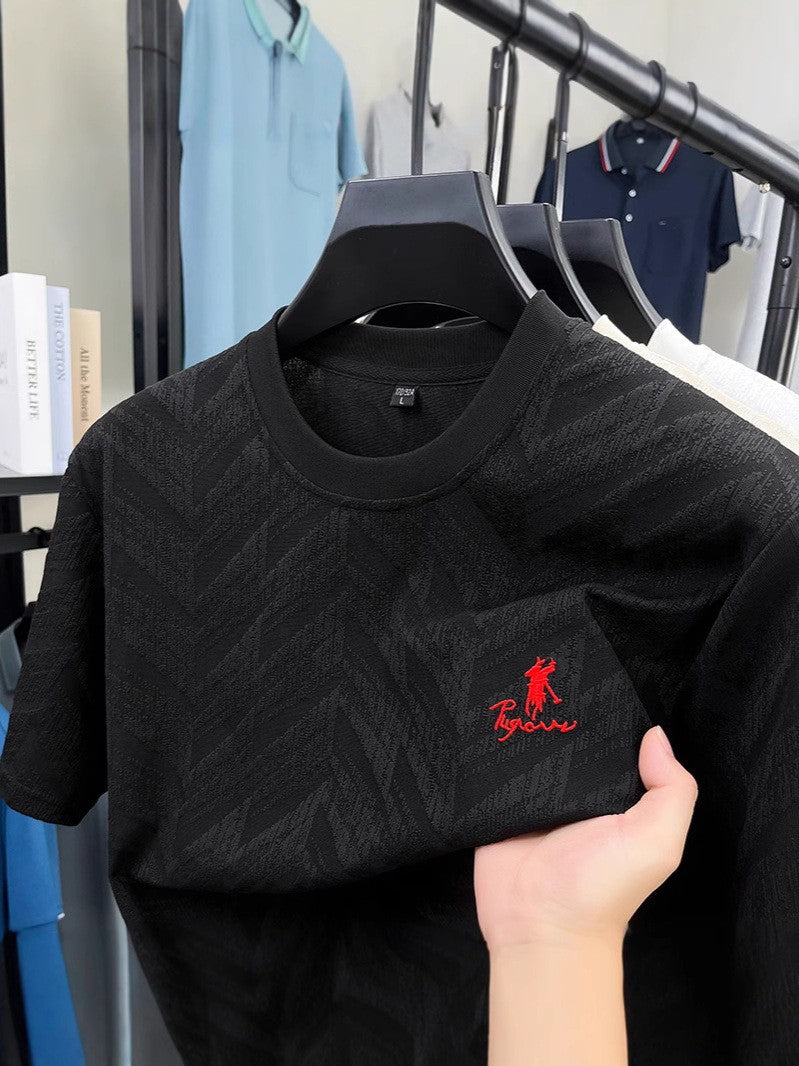 Summer men's high quality jacquard short-sleeved t-shirt