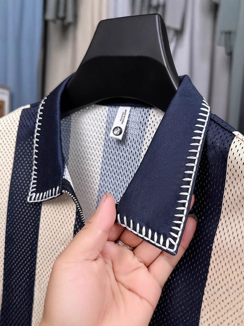 Men's semi-zippered ice silk short-sleeved T-shirt(cm498)