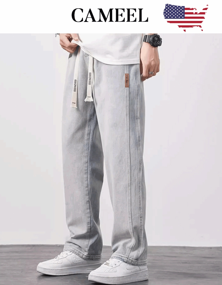 بنطلون جينز رجالي واسع ، بِقصّة مستقيمة ، للأوقات الاسترخائية(cm67)