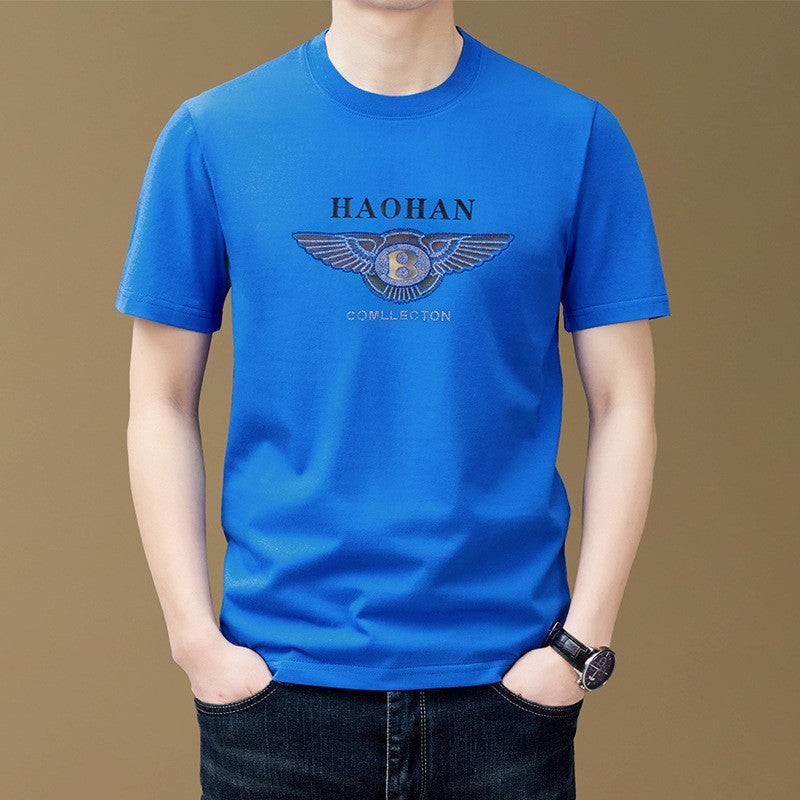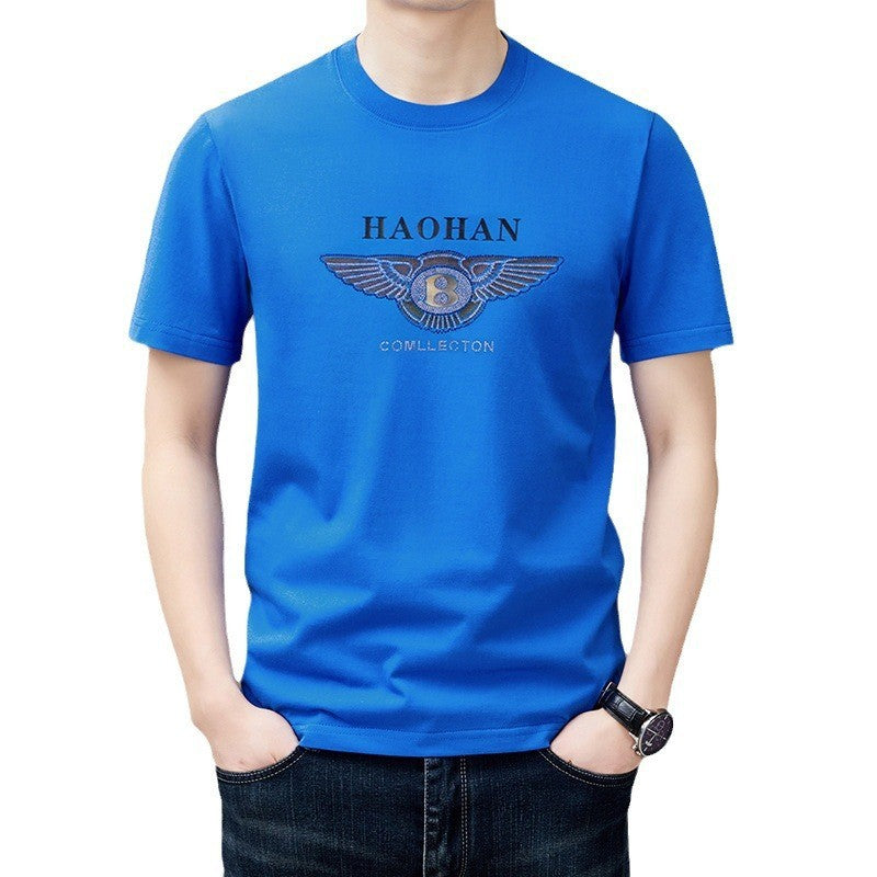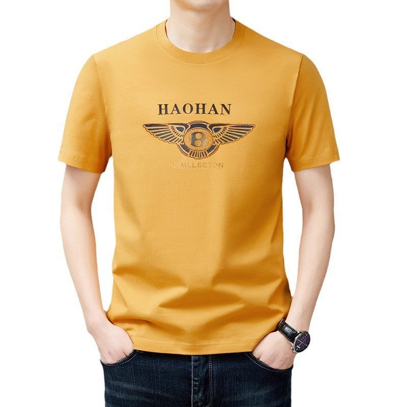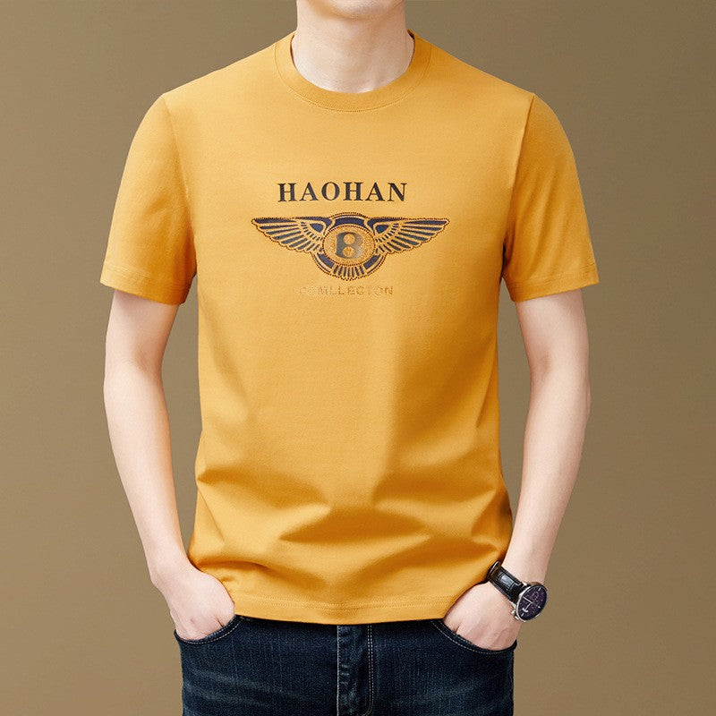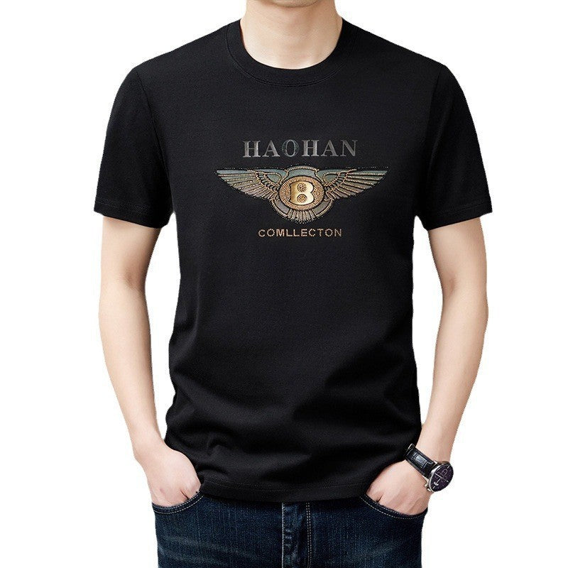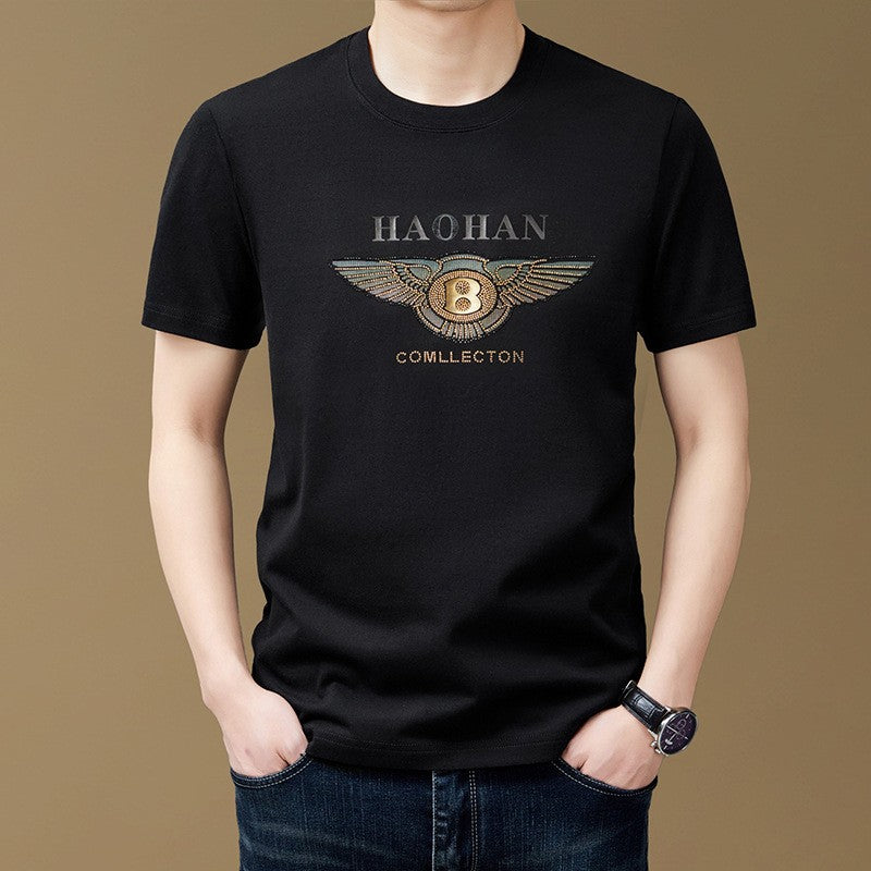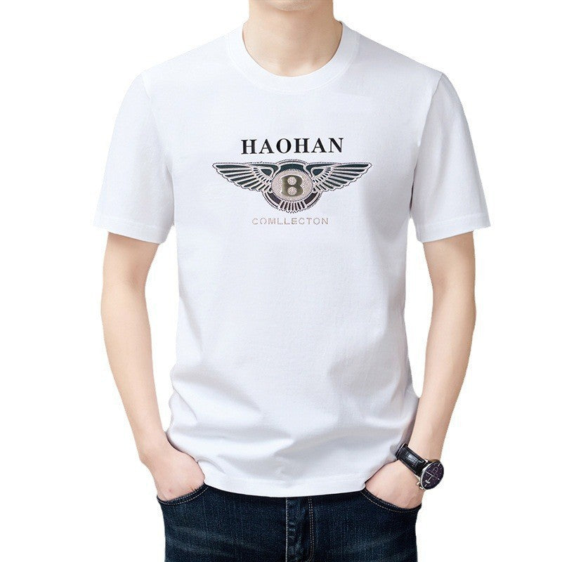hou425-Men's mercerized cotton letter print hot diamond T-shirt