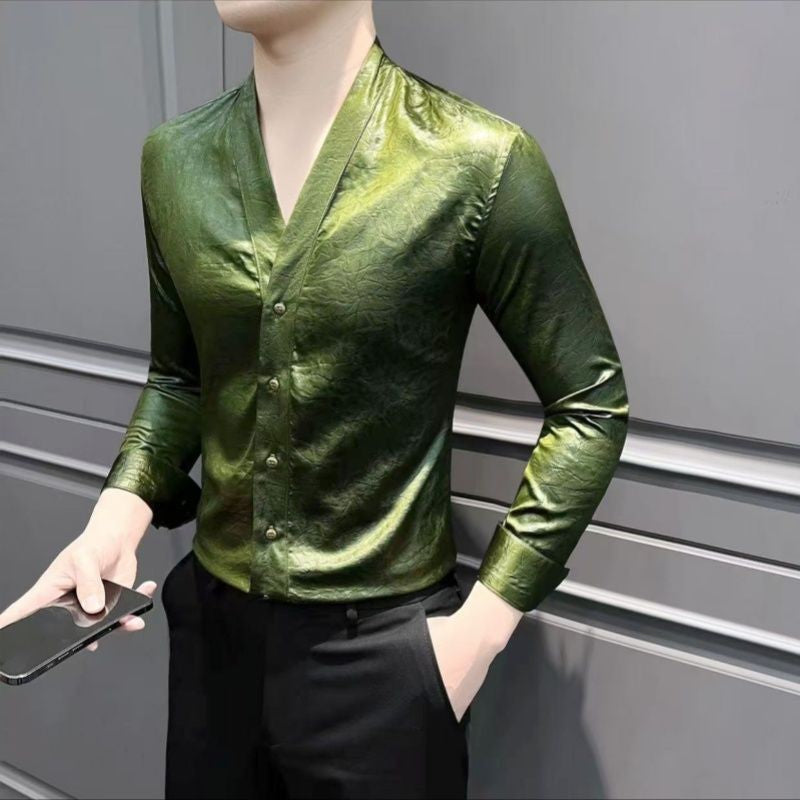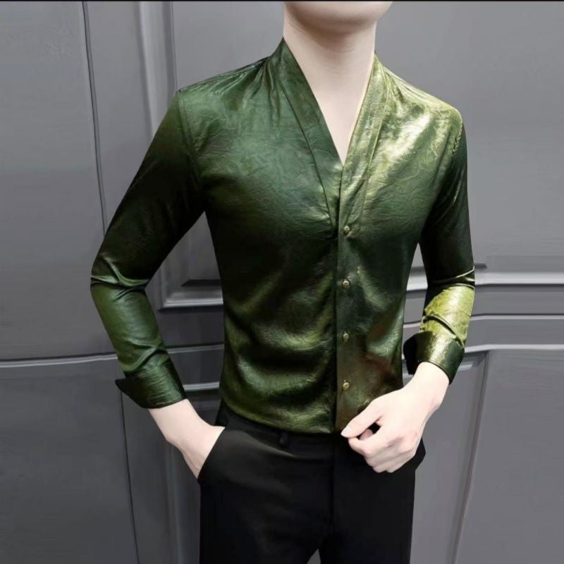 luu315-Men's light luxury high-end Korean style long-sleeved shirt