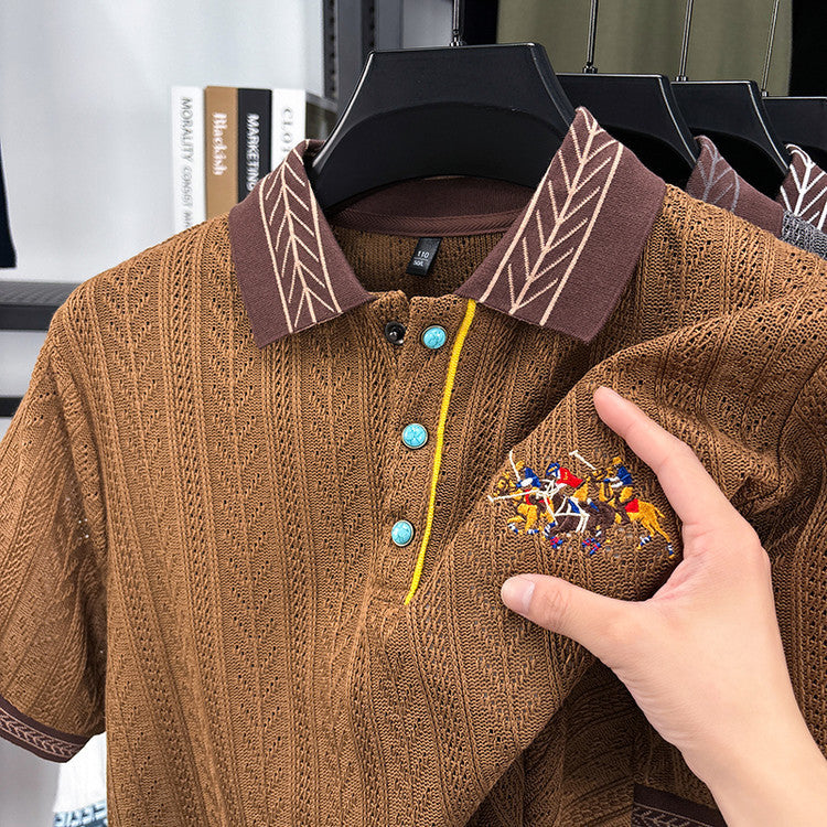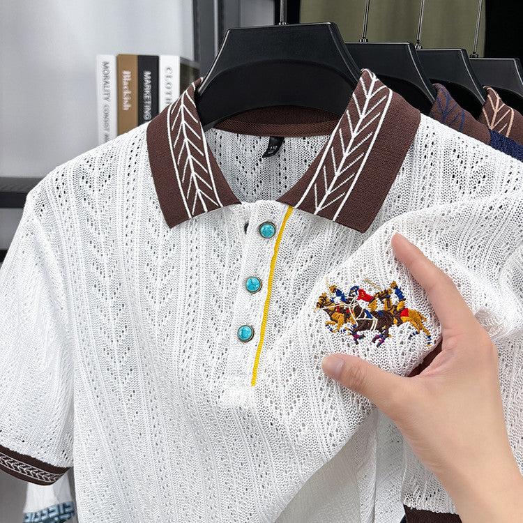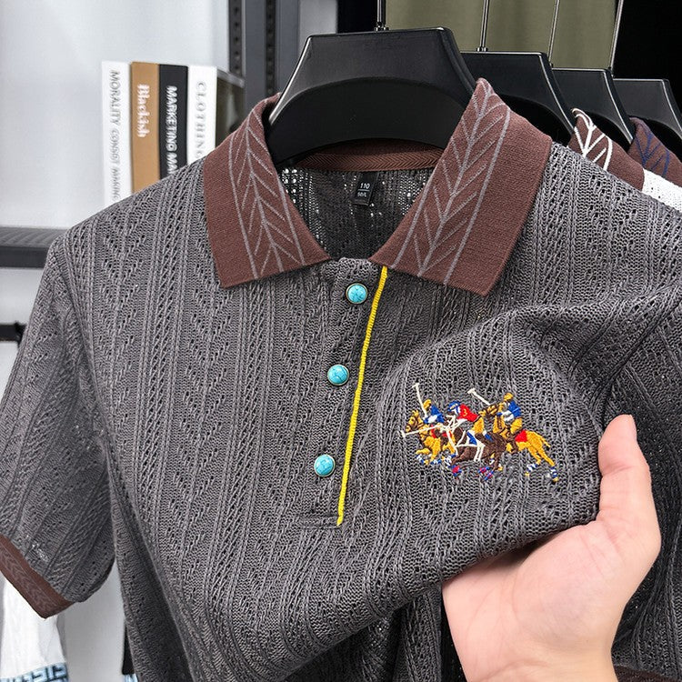 luu389-Summer Men's Classic Pinstripe Short Sleeve POLO Shirt
