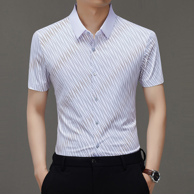 Men's Business Casual Printed Short Sleeve Shirt