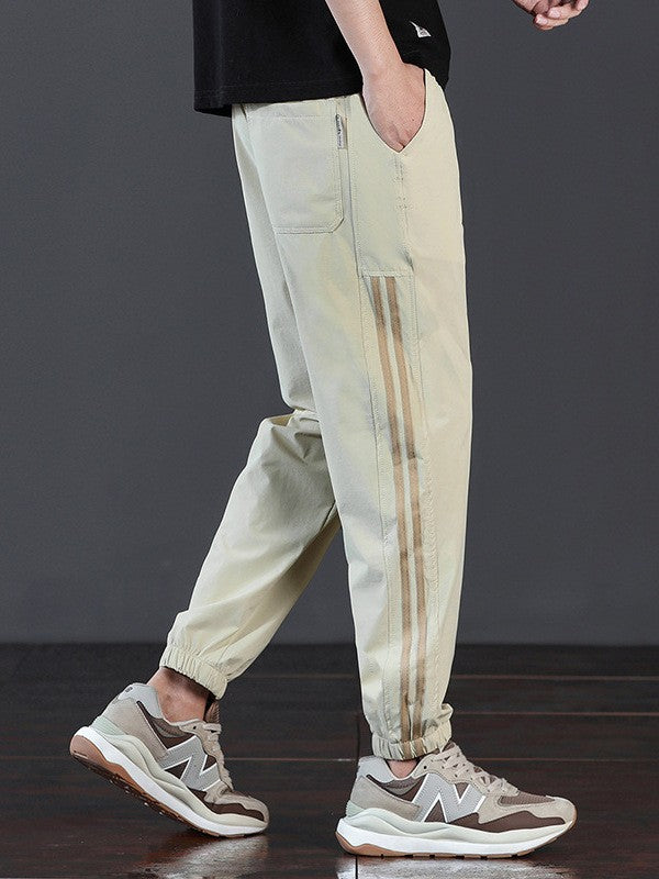Men's striped drawstring casual sports pants